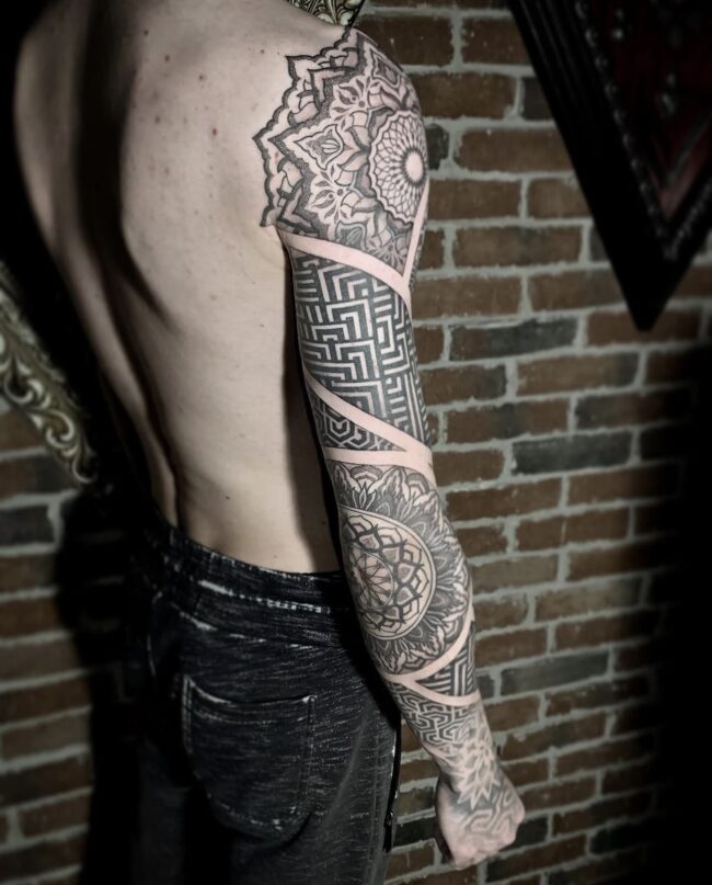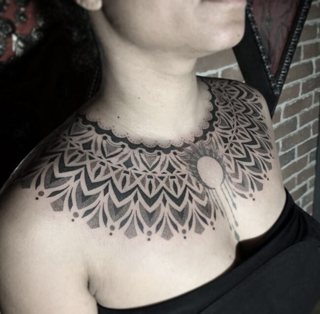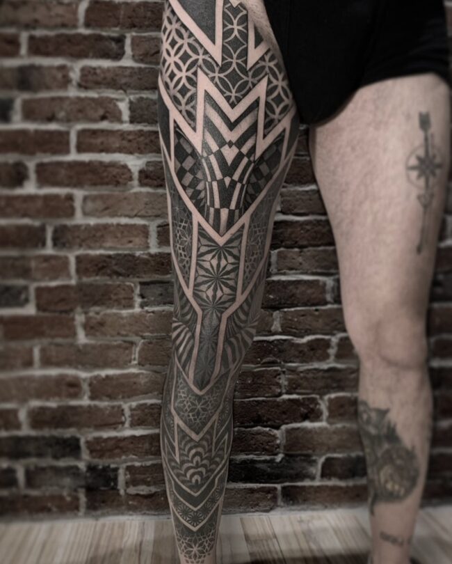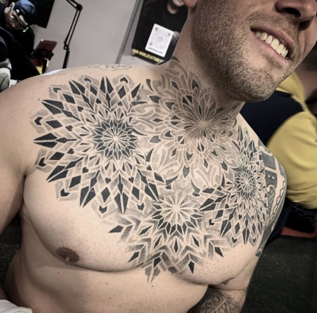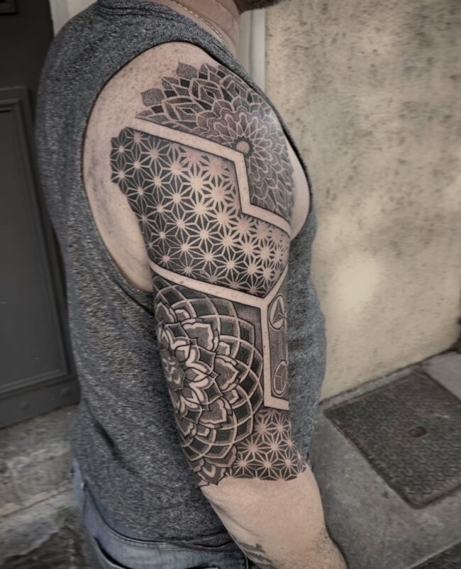 Résident chez Noire Ink France, Aivar Tsalko est spécialisé dans le tatouage ornemental, le dotwork et les compositions géométriques. Son travail se distingue par sa précision et son sens du détail.