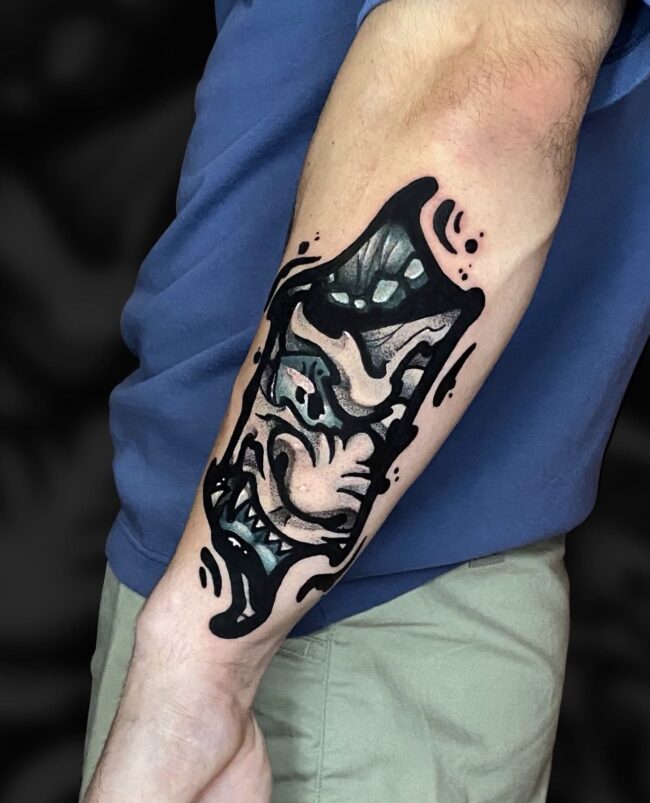Il aime créer des personnages et des scènes expressives, souvent avec une touche d’humour. Ses tatouages traduisent les idées, les souvenirs ou les moments importants de ses clients, dans un style vivant et personnel.